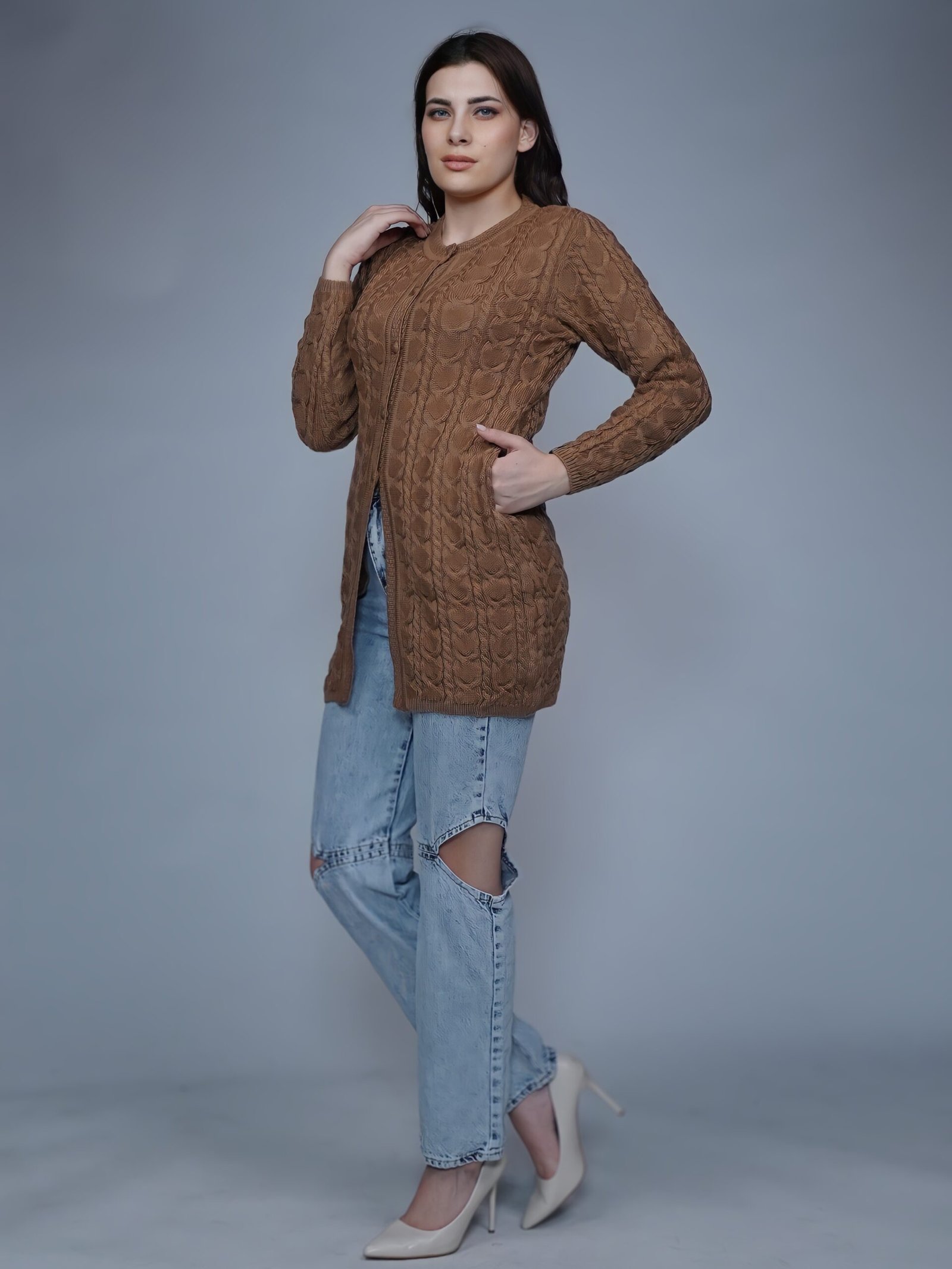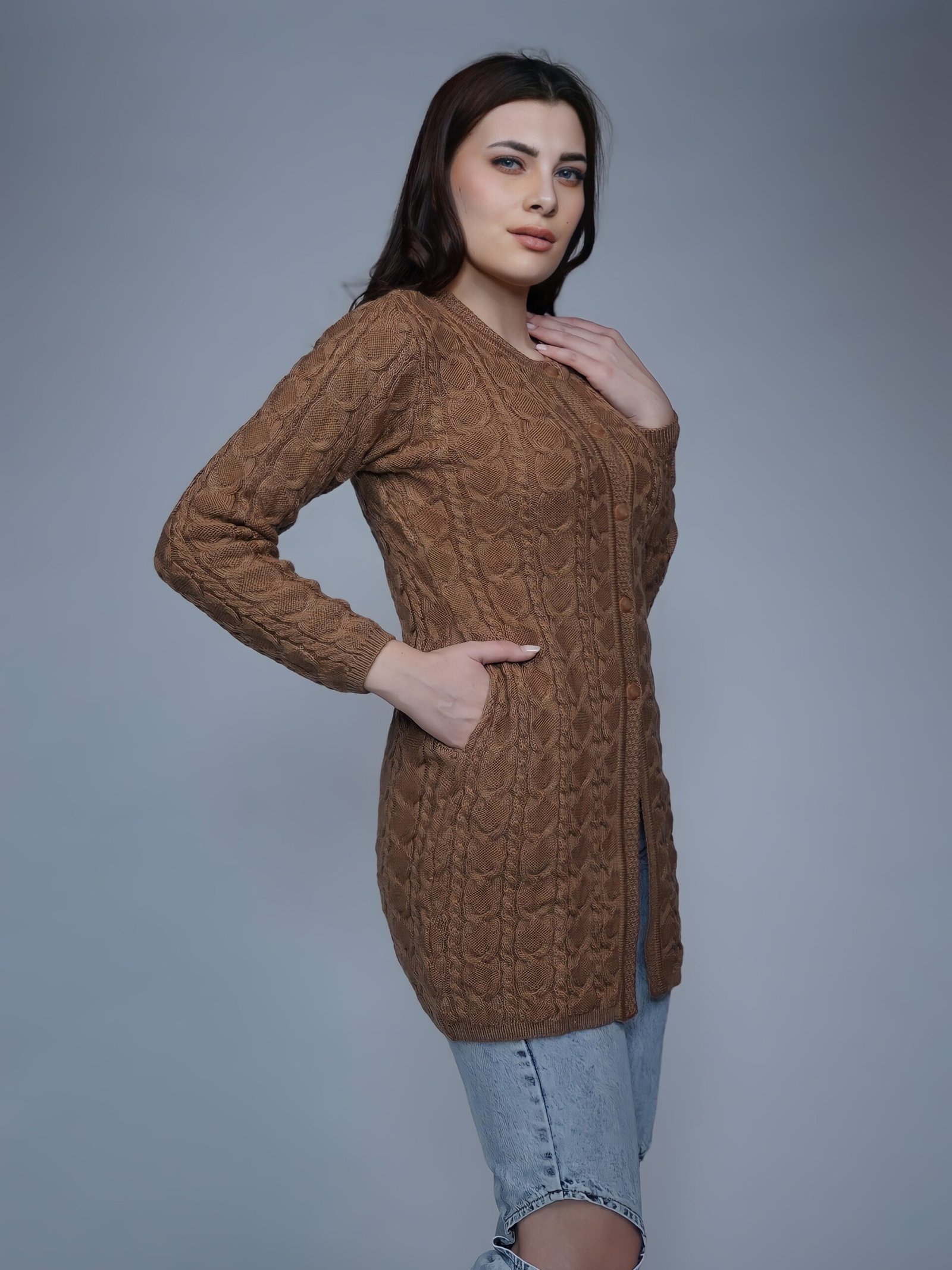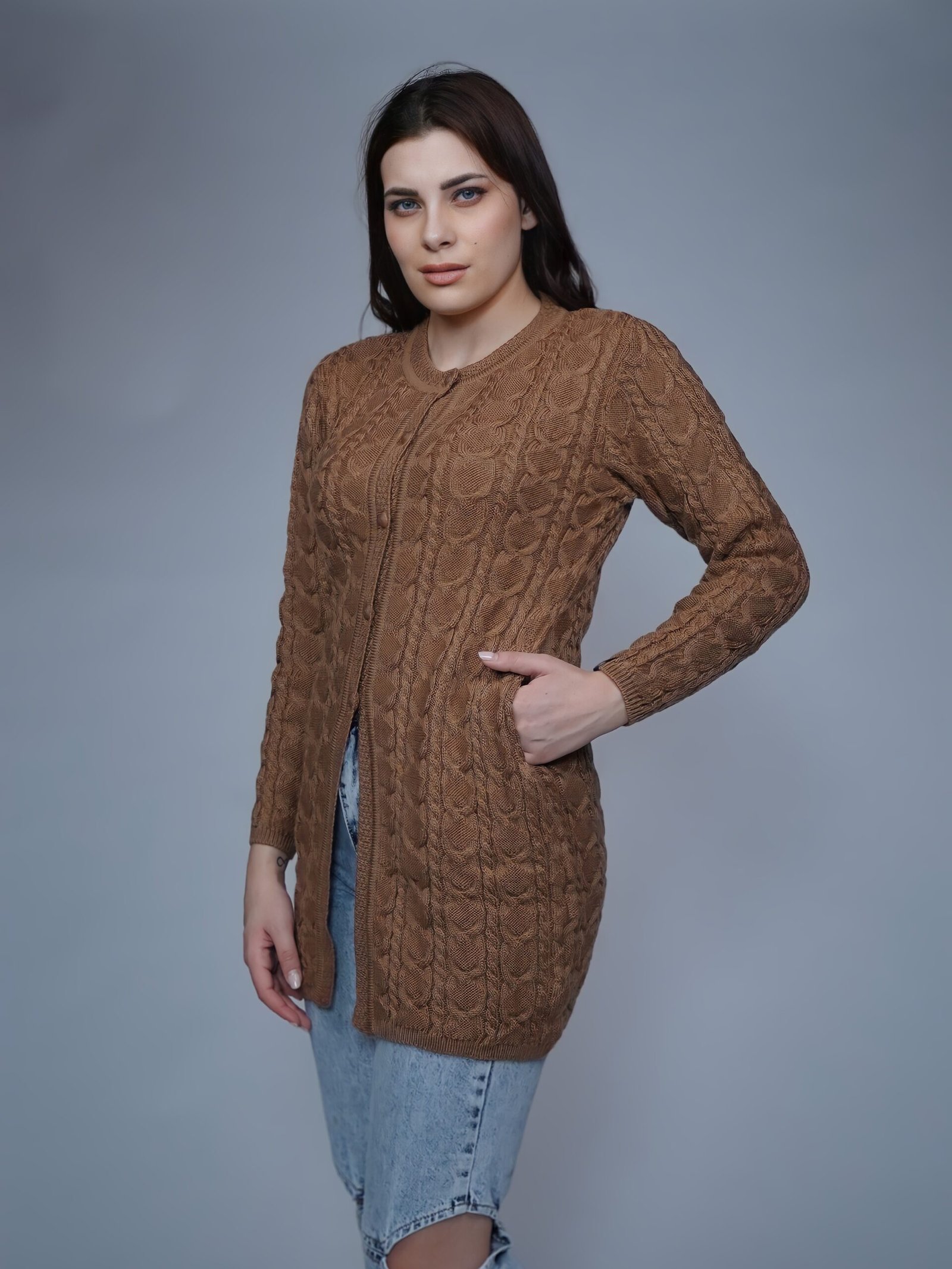 Creative Line Knitted Long Cardigan